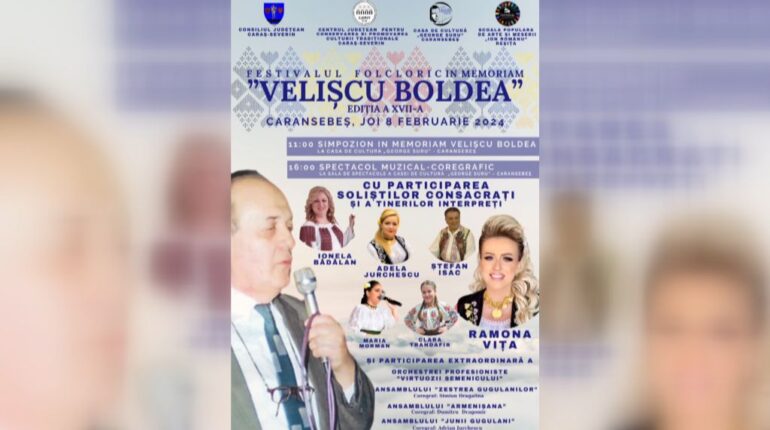 Consiliul Județean Caraș-Severin, Centrul Județean pentru Conservarea și Promovarea Culturii Tradiționale Caraș-Severin (CJCPCT CS) în parteneriat cu Casa de Cultură ,,George Suru“ Caransebeș și Școala Populară de Arte și Meserii ,,Ion Românu“ Reșița organizează în data de 8 februarie (joi) 2024 Festivalul „Velişcu Boldea“, ediţia a XVII-a. Festivalul In Memoriam ,,Velișcu Boldea“ dorește să aducă […]