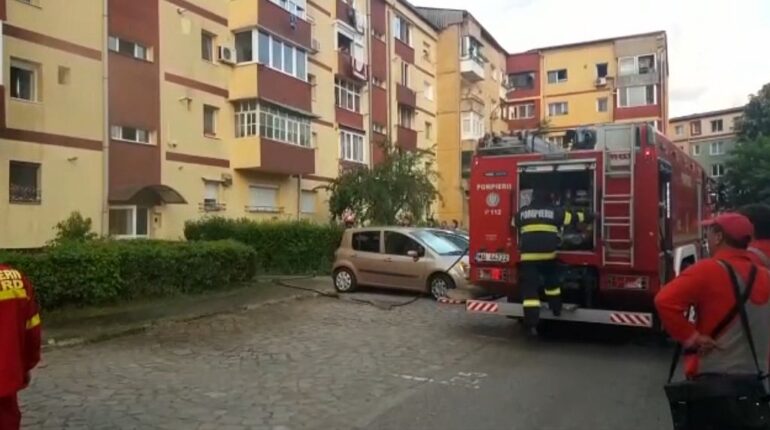 Momente de panică pentru locatarii unui bloc de pe strada Făgărașului din Reșița! Un incendiu a izbucnit la etajul 1