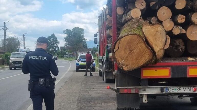 Amenzi uriașe și peste 300 metri cubi de lemn, confiscat de polițiștii cărășeni