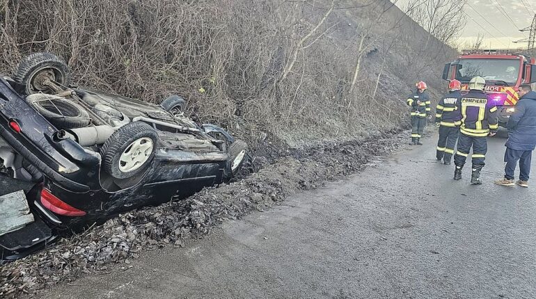 A fost, din nou, accident rutier la Reșița, de data aceasta pe Valea Țerovei. Din cauza vitezei, o șoferiță de 41 de ani a pierdut controlul și s-a răsturnat cu roțile-n sus, în șanțul de pe marginea drumului. sursa video: Facebook Loga N. Yonuț