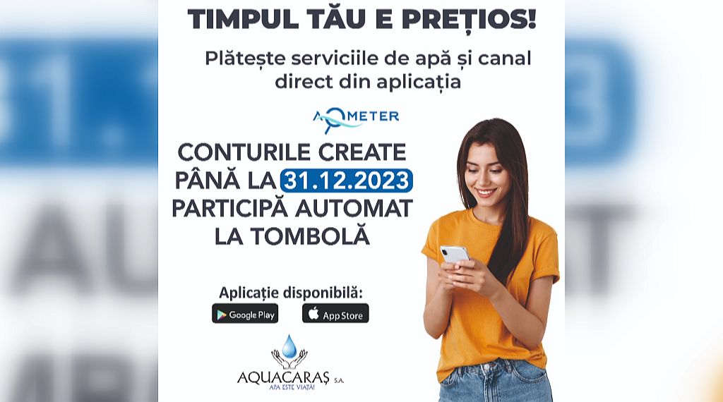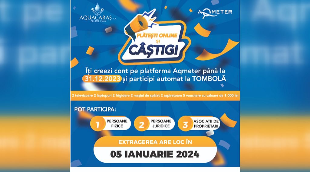 Mai mult decât atât, cei care își fac cont pe platforma Aqmeter până la 31 decembrie 2023 participă automat la TOMBOLA organizată de AQUACARAȘ.