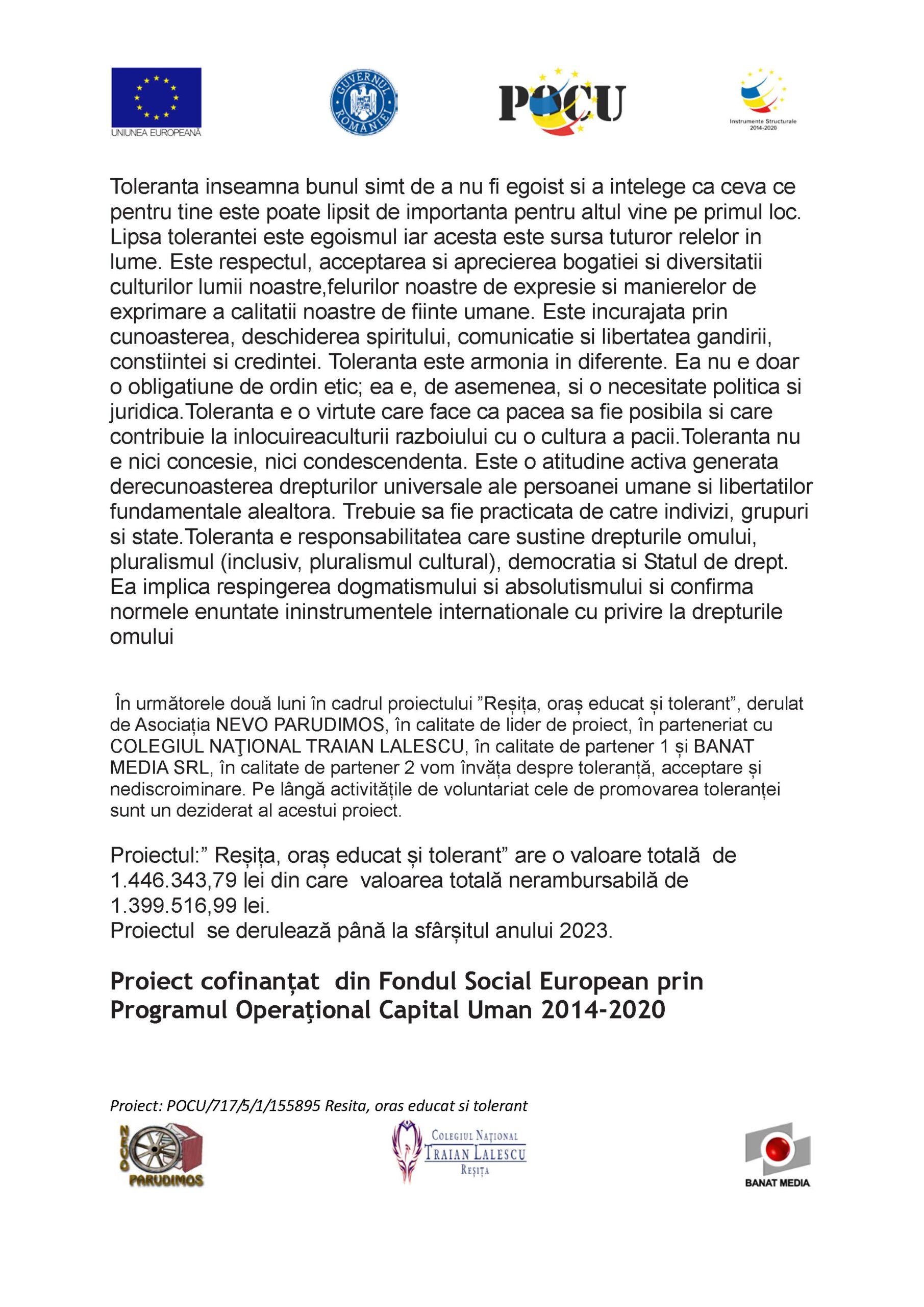 18DEC. Un proiect cu rezultate vizibile Proiectul „Reșița, oraș educat și tolerant” a ajuns la final! Sute de elevi și chiar mii de membrii ai...