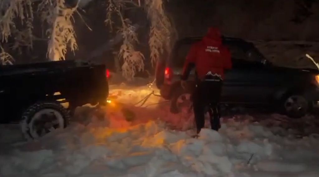 Trei copii, cu vârste cuprinse între 2 și 7 ani, au rămas împreună cu părinții lor, înzăpeziți pe un drum închis circulației pe timp de iarnă.