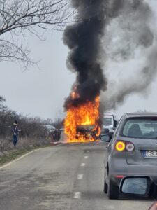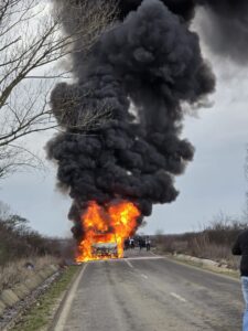 Flăcările s-au extins rapid, iar până la sosirea echipajelor de intervenție, vehiculul a fost cuprins în totalitate de foc.