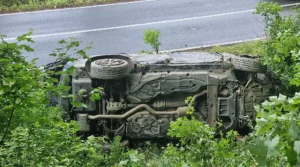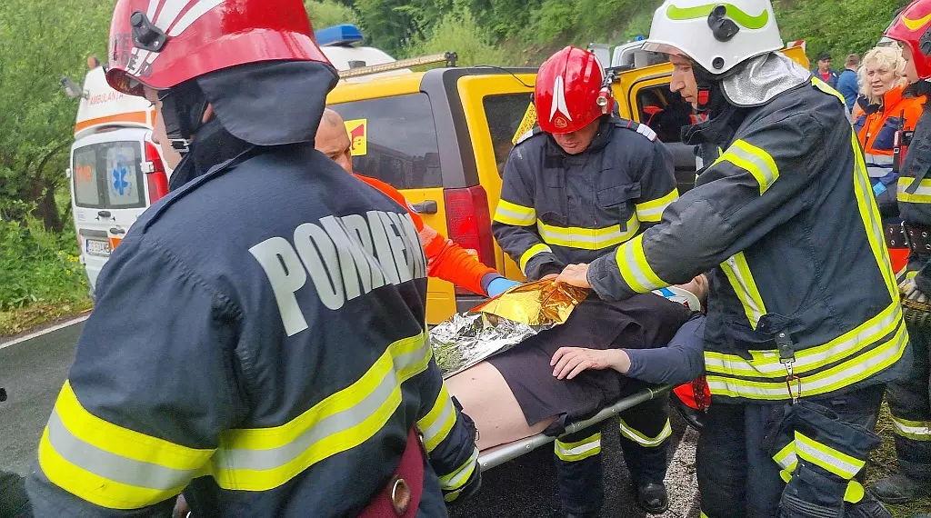 Mai exact, în accident a fost implicat un singur autoturism, condus de o femeie de aproximativ 30 de ani care, la un moment dat, a pierdut controlul volanului și s-a răsturnat cu roțile-n sus, în afara părții carosabile.