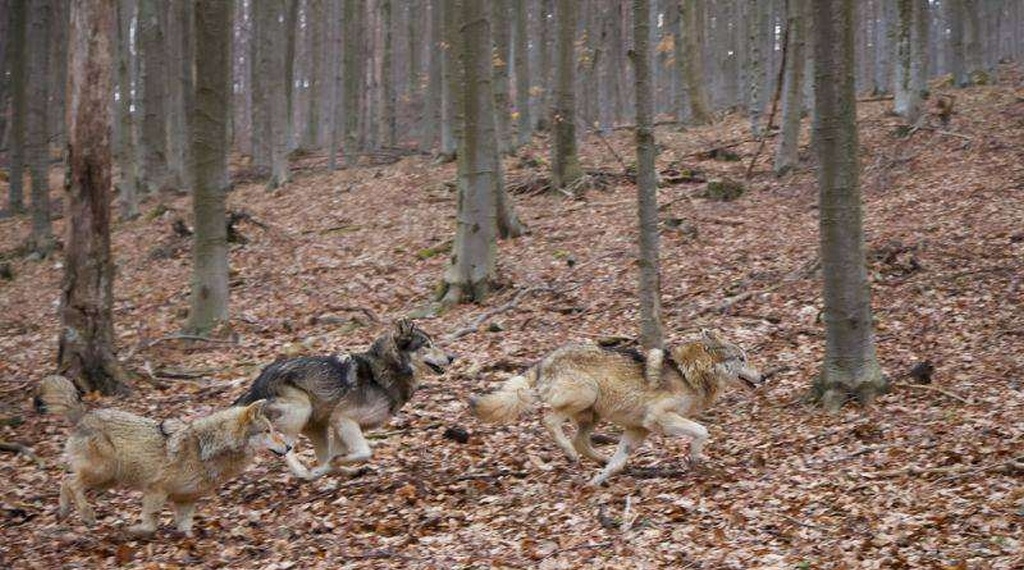 O haita de lupi , a fost surprinsă pe camerele de supravehere amplasate în Parcul National Semenic Cheile Carasului.