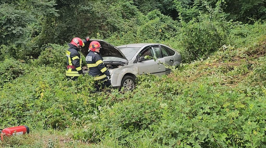 A fost accident rutier la ieșire din Cîlnic spre Bocșa, după ce un șofer care a pierdut controlul s-a răsturnat cu mașina în șanțul de pe marginea drumului.