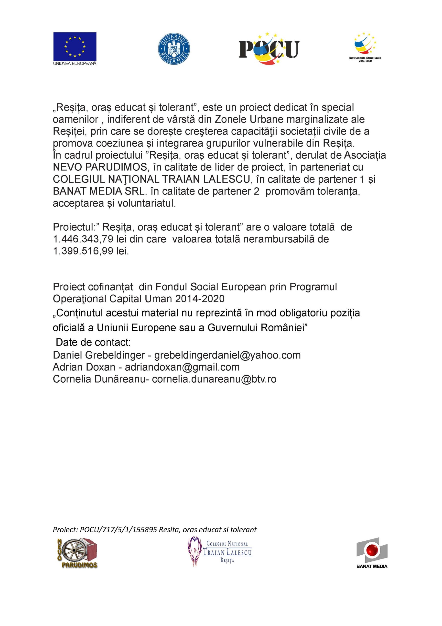 18DEC. Un proiect cu rezultate vizibile Proiectul „Reșița, oraș educat și tolerant” a ajuns la final! Sute de elevi și chiar mii de membrii ai...