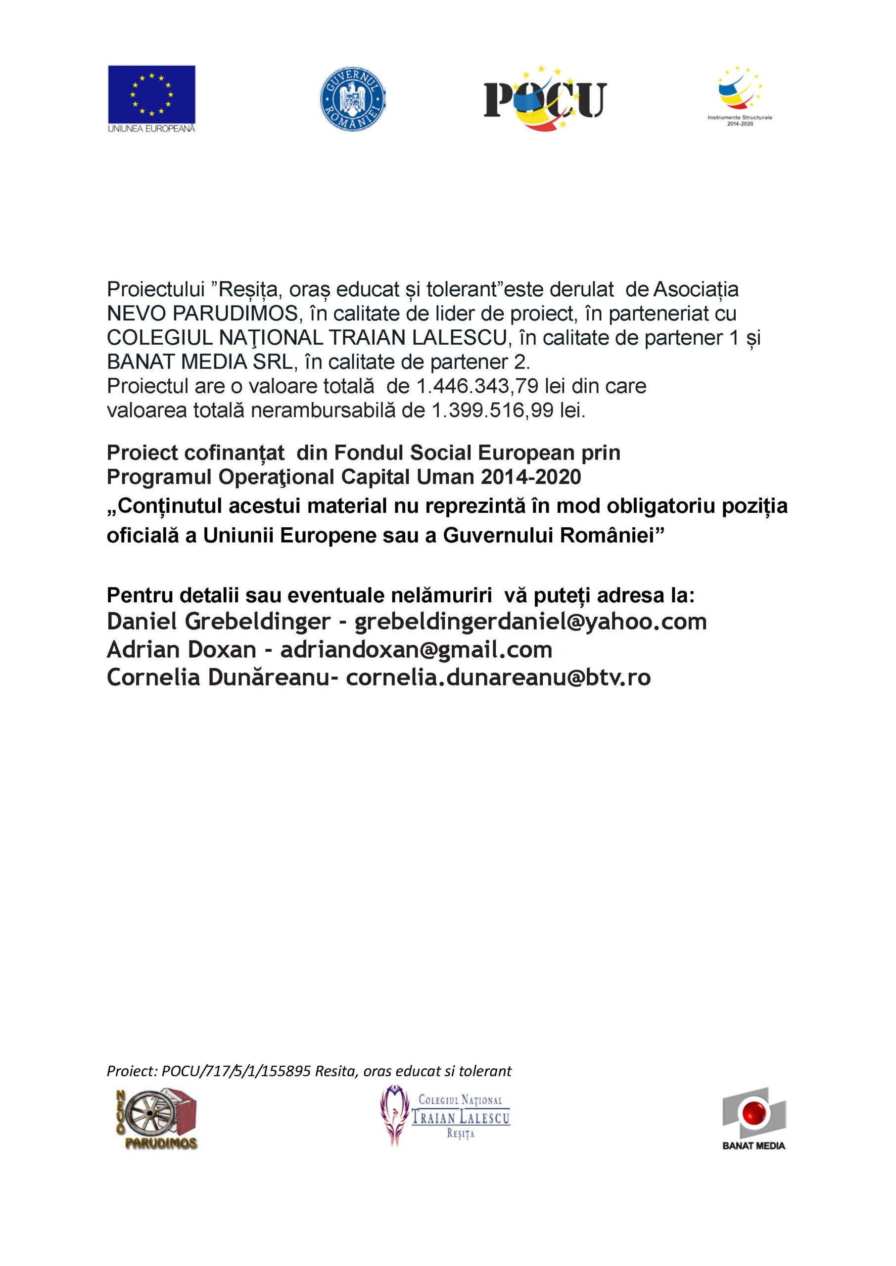 18DEC. Un proiect cu rezultate vizibile Proiectul „Reșița, oraș educat și tolerant” a ajuns la final! Sute de elevi și chiar mii de membrii ai...